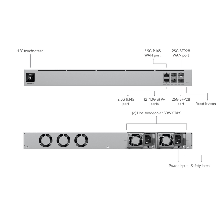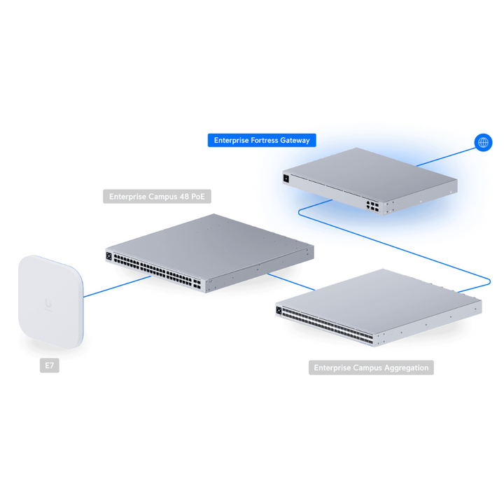 25G Cloud Gateway with 500+ UniFi device / 5,000+ client support, 12.5 Gbps IPS routing, and complete high availability.